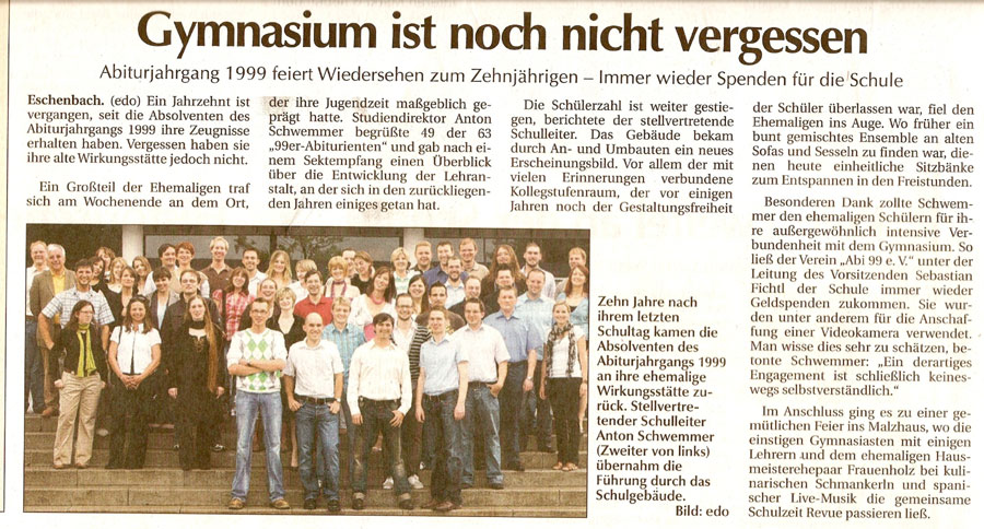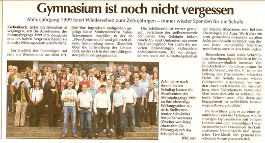 des Abschlussjahrgangs 1999 des Gymnasiums Eschenbach